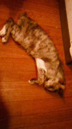 玄関で横になっているジャガーです・・・。すっかり痩せています。