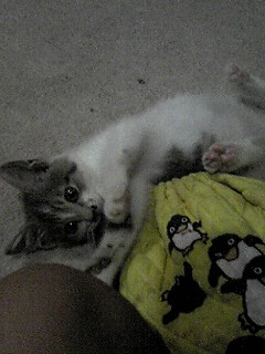 即効電話を入れると、もう近くまで来てると言う。どうやら近所で野良の子猫を拾って来たんだな。