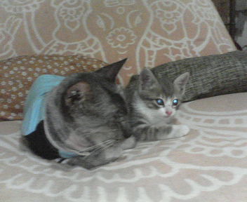 まあ、それで母に「子猫がいるんだよ。」なんて、抱かせてあげたら、どうやら可愛くて一目ぼれしちゃったんだろう。