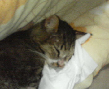 と、見てたら、しのはなおも足掻いて、袋を噛み切ってどこかへ逃げてしまった。